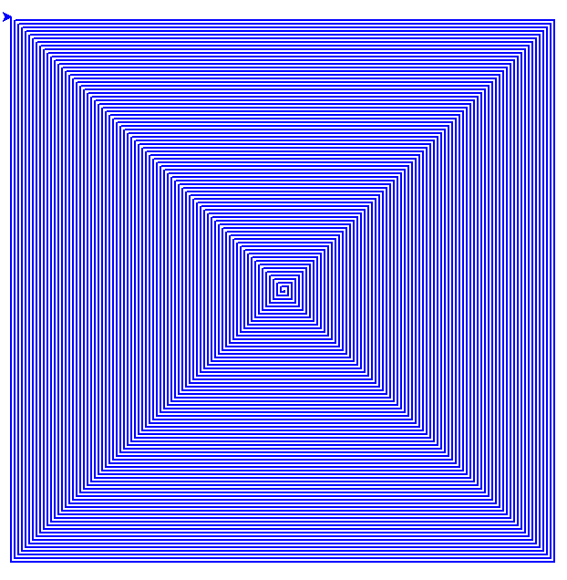 переміститись на (i*2) пікселів (сторона спіраль буде збільшуватися),
